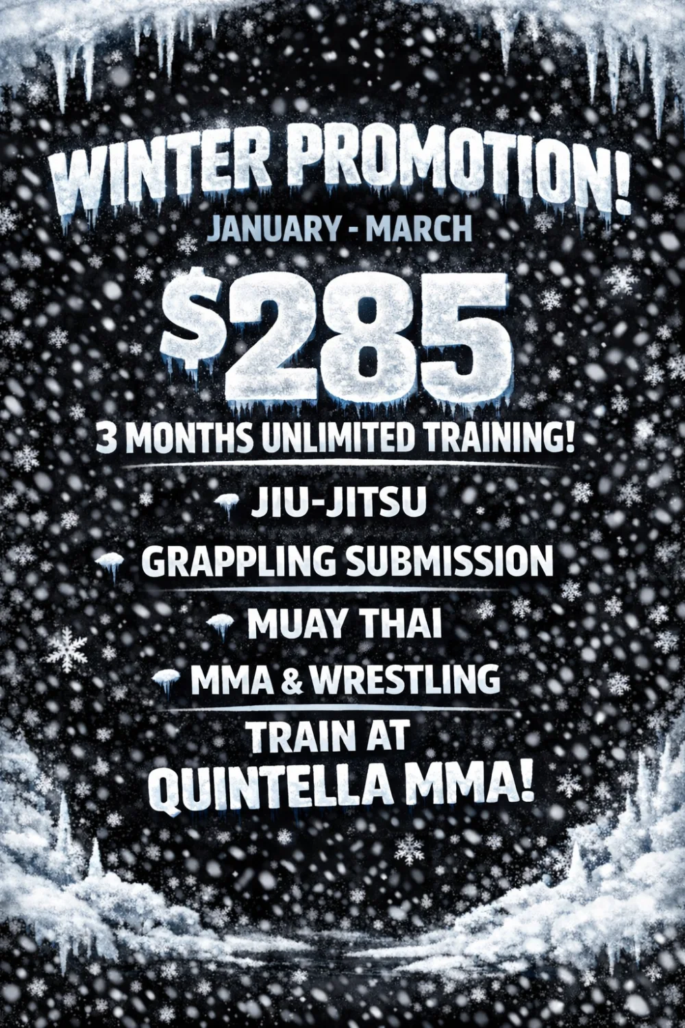 Train Unlimited for 3 months at Quintella MMA, promotion end's at the end of Jan must purchase before Jan 31st